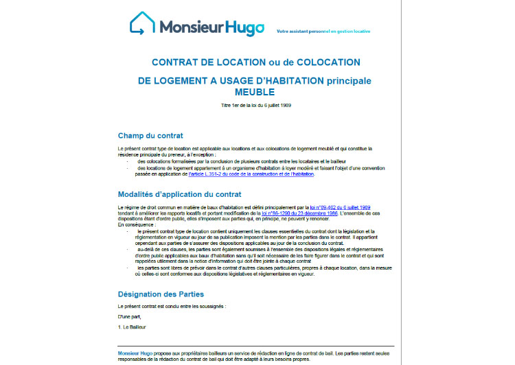 Pour réaliser votre bail de location (bail nu, meublé, étudiant ou colocation en bail individuel ou bail unique) :